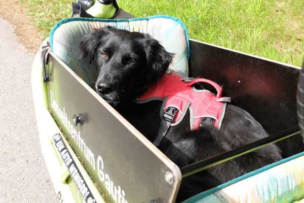 Meine Spezialität sind die Anhänger, trotzdem hat es mich interessiert, wie sich ein Hund im Lastenrad chauffieren lässt, welche Vor- und Nachteile es gibt.