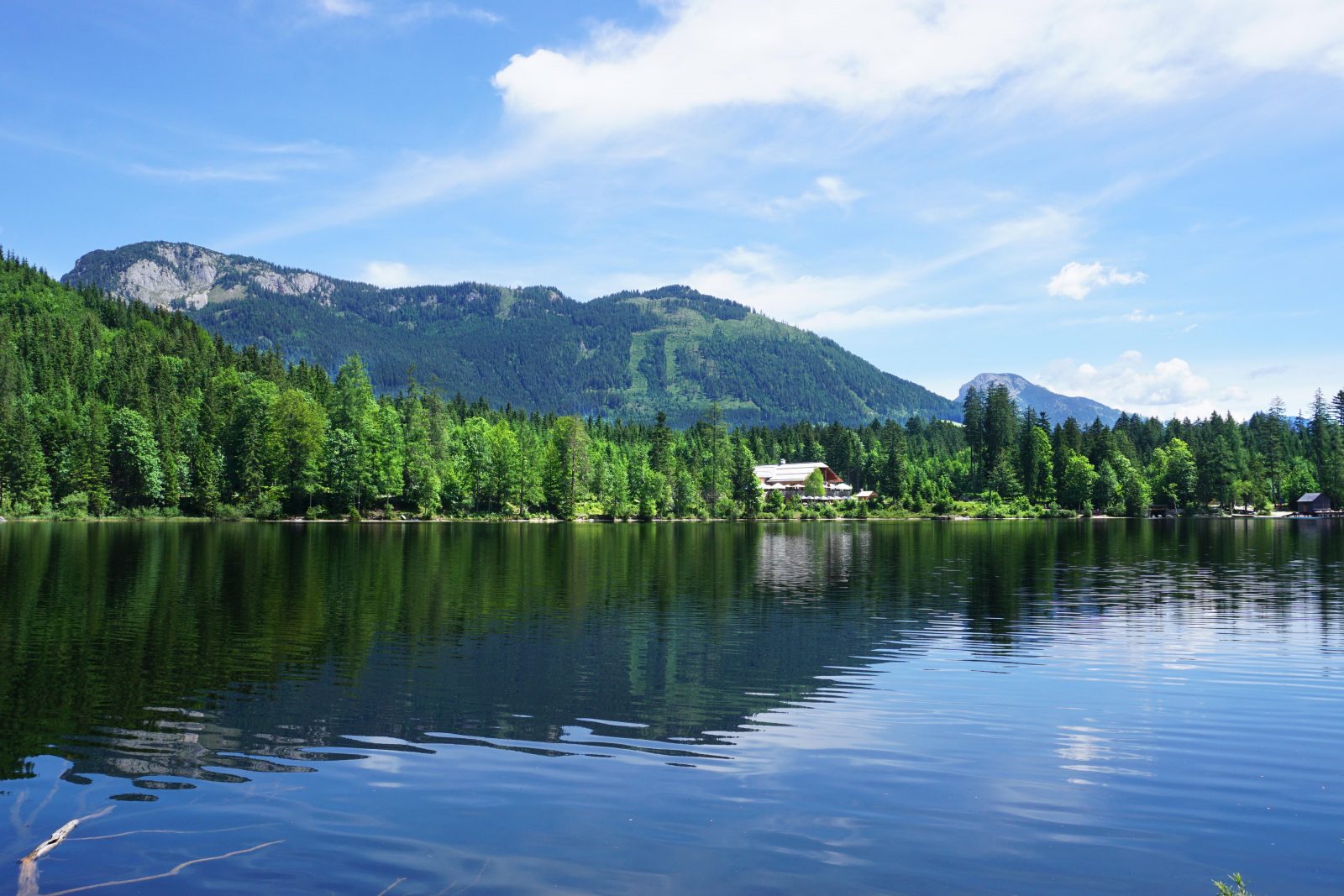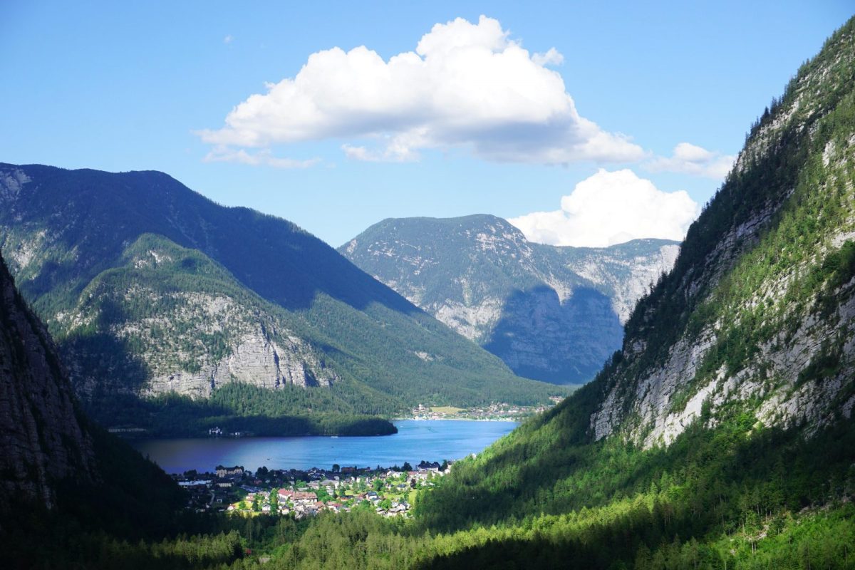 Nach einer langen Mittagssiesta, die ich in den nächsten Tagen zur Regel machte, folgte die zweite lange Auffahrt über eine beliebte Mountainbikestrecke. Verschiedene Touren führen über einen Pass zwischen Gosausee und Hallstättersee, zwei wirklichen Highlights. Die Gosauseen – vorderer und hinterer – werden von den felsigen Zacken des westlichen Dachsteins flankiert. Ganz entfernt glitzert der Dachsteingletscher. Den sehr viel größeren und besiedelten Hallstättersee zieren weniger beeindruckende Bergflanken. Seine Reize liegen in der Ortschaft Hallstatt, die kühn ans Wasser gebaut wurde. An seinem Ufer lag unser erstes Ziel. Ein ganz besonderer Campingplatz mit eigenem Badestrand, üppiger Vegetation, verwinkelt, bunten Zirkuswagen, liebevollen Details. Schade, dass der Etappenradler abends kommt und morgens geht, denn dieser Ort wäre definitiv einen längeren Aufenthalt Wert gewesen. Das Örtchen Obertraun am Hallstätter See kann ich ohnehin jedem Wohnmobilisten ans Herz legen, der Urlaub in den Bergen mit Baden verbinden möchte. Entlang des Sees gibt es zahlreiche öffentliche Badeplätze und sogar Parkplätze, auf denen das Campieren im Wohnmobil gegen Parkgebühr gestattet ist. Wo findet man sowas in der heutigen Zeit schon noch? Ich komme definitv wieder – mit meinem roten Büs’chen!