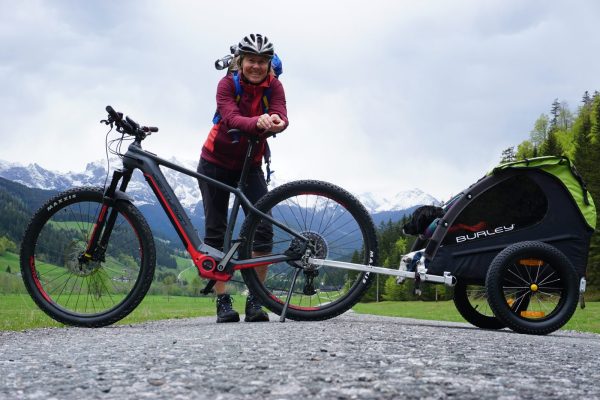 Schon lange reizt es mich, Mehrtagestouren auf dem Rad mit meinem kleinen Vierbeiner zu unternehmen. Doch gibt es zwei Gründe, aus denen ich bislang nicht mehr als zögerliche „Testtouren“ absolviert habe. Am Liebsten würde ich mit normalem Rad losziehen, das Zelt im Gepäck, völlig flexibel und nur ganz gelegentlich für eine Dusche auf einen Campingplatz einkehrend. Nur habe ich neben Zelt und Zeug auch Hund und Anhänger dabei. Also schlappe 30 Kilogramm zusätzlich. Und dieses Gewicht bringt mich im bergigen Terrain nun doch an meine körperliche Leistungsgrenze. Denn – und nun kommt der zweite Grund – ich liebe die Berge und eine Flachstrecke würde mir nur halb so viel Spaß machen. Außerdem ist Napoli eher ein Trödler und in der Ebene passt unser Tempo schlecht zueinander. Aber einen Tod muss man bekanntlich sterben: entweder flache Topografie oder eBike als Transportmittel. Und so entschloss ich mich kürzlich für Letzteres. Denn wer es nicht ausprobiert hat, kann schließlich auch nicht mitquatschen. Vielleicht ist es ja doch gar nicht so verkehrt.