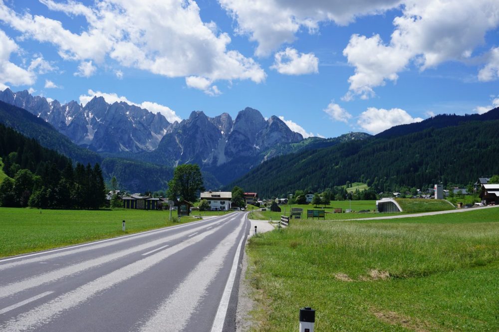 Im Supermarkt von Gosau gab es erst mal eine Wurst für Napoli, der schon ziemlich müde in seinem Anhänger schlummerte und ein spätes Frühstück sowie Power-Cola für mich. Es war mittlerweile ordentlich warm geworden. Nach einem Brunnen Ausschau haltend fiel mir auf, dass ich an keinem einzigen vorüber gekommen war. Und so sollte es auf der gesamten Runde bleiben. Sehr selten hat der Radler die Gelegenheit, seine Wasserflaschen zu füllen ohne einzukehren.