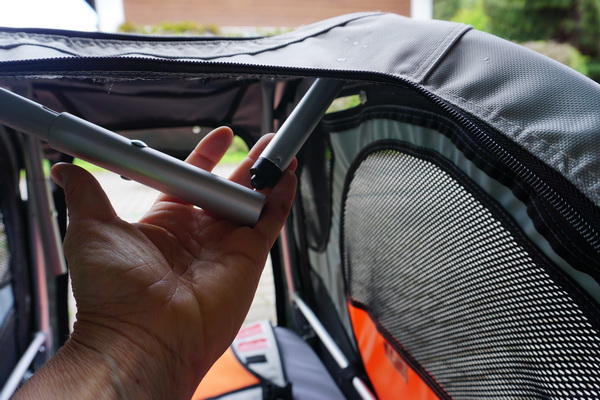 Der Rahmen sowie die Mechanismen für das Zusammenlegen des Hundeanhängers sind bei DogBus und Comfort Wagon die gleichen.