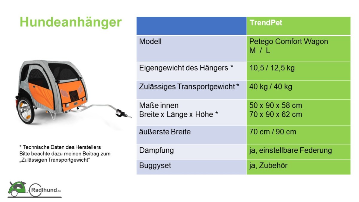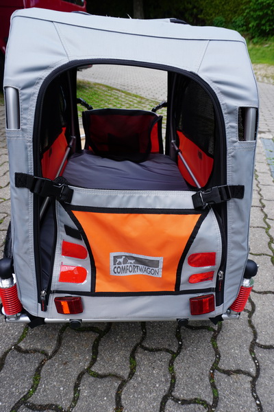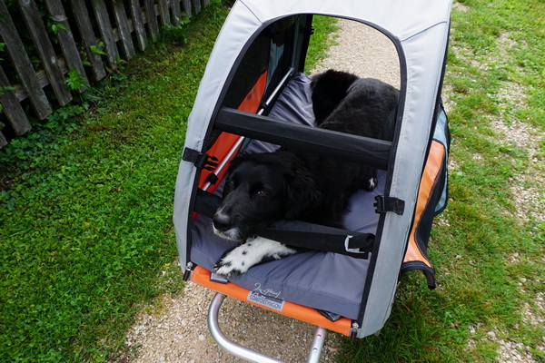 Der Petego ist für mich der ideale Kompromiss zwischen Gewicht, Komfort und leichtem Handling. Das Raumkonzept ist zwar nicht ganz so komfortabel für mittelgroße Hunde, die sitzend nur Platz haben, wenn das vordere Verdeck offen ist. Wer wie ich den Anhänger ständig verlädt, freut sich aber über Gewicht, Volumen und rasches Zusammenlegen bzw. aufbauen.