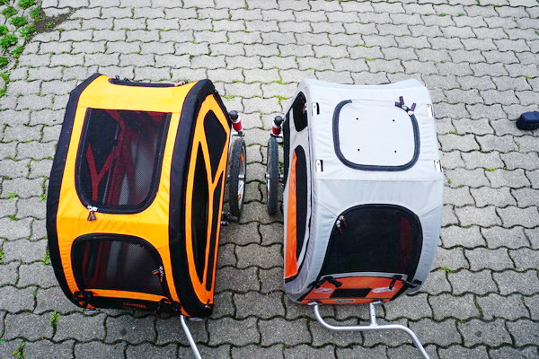 Die Geometrie der beiden Hundeanhänger ist nahezu identisch. Im Foto beide Modelle in Größe M.
