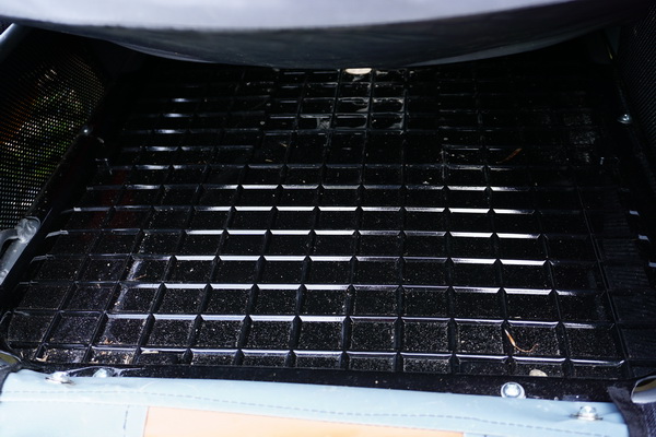 Die Bodenplatte des Petego Comfort Wagon besteht aus einer Kunststoffplatte (die des DogBus aus Aluminium). Der Kunststoffboden ist in Kombination mit der Deichsel meiner Ansicht nach etwas geräuschanfällig.