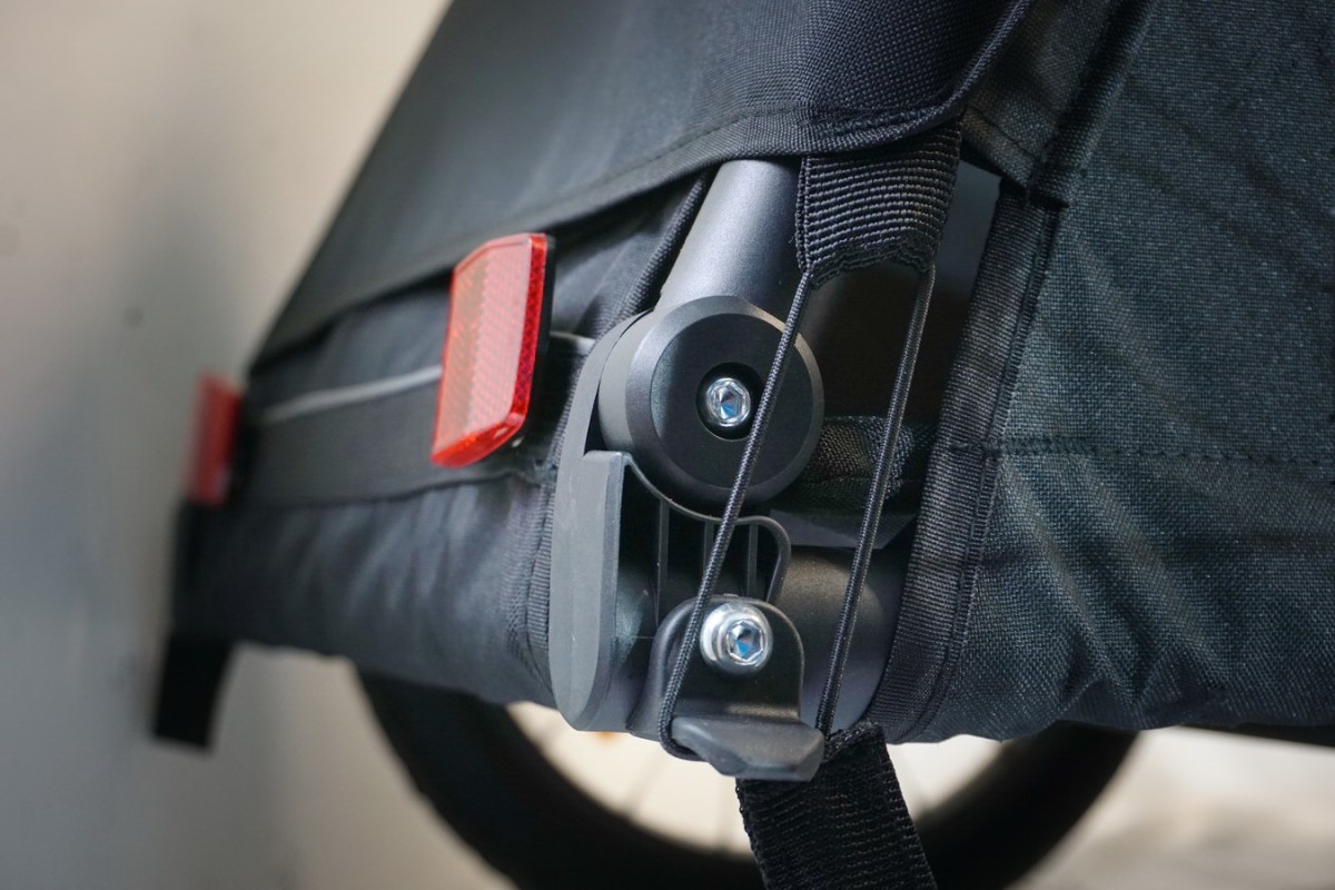 Deichsel und Kupplungsteil sind unverändert geblieben. Auch hier gilt wieder: Minimalismus beschert Gewichtsreduktion. Es gibt Nutzer, die das Ankoppeln ans Rad hakelig empfinden – ich mag die Kupplung. Erwähnenswert ist vielleicht noch, dass die Elemente vom Prinzip her über Jahrzehnte gleich geblieben sind und auch an den Burley Kinderanhängern verbaut werden.