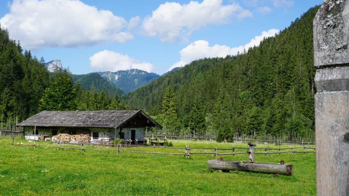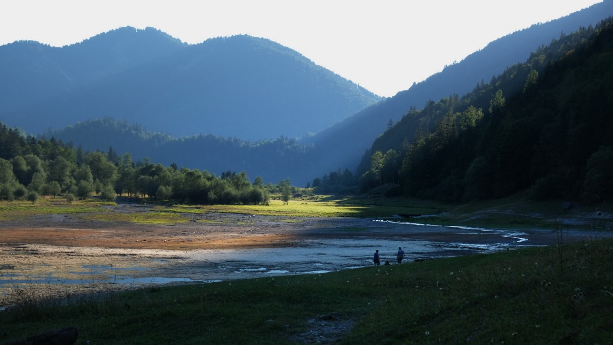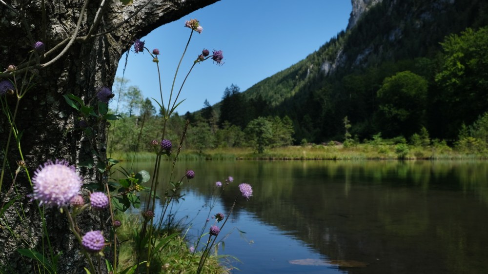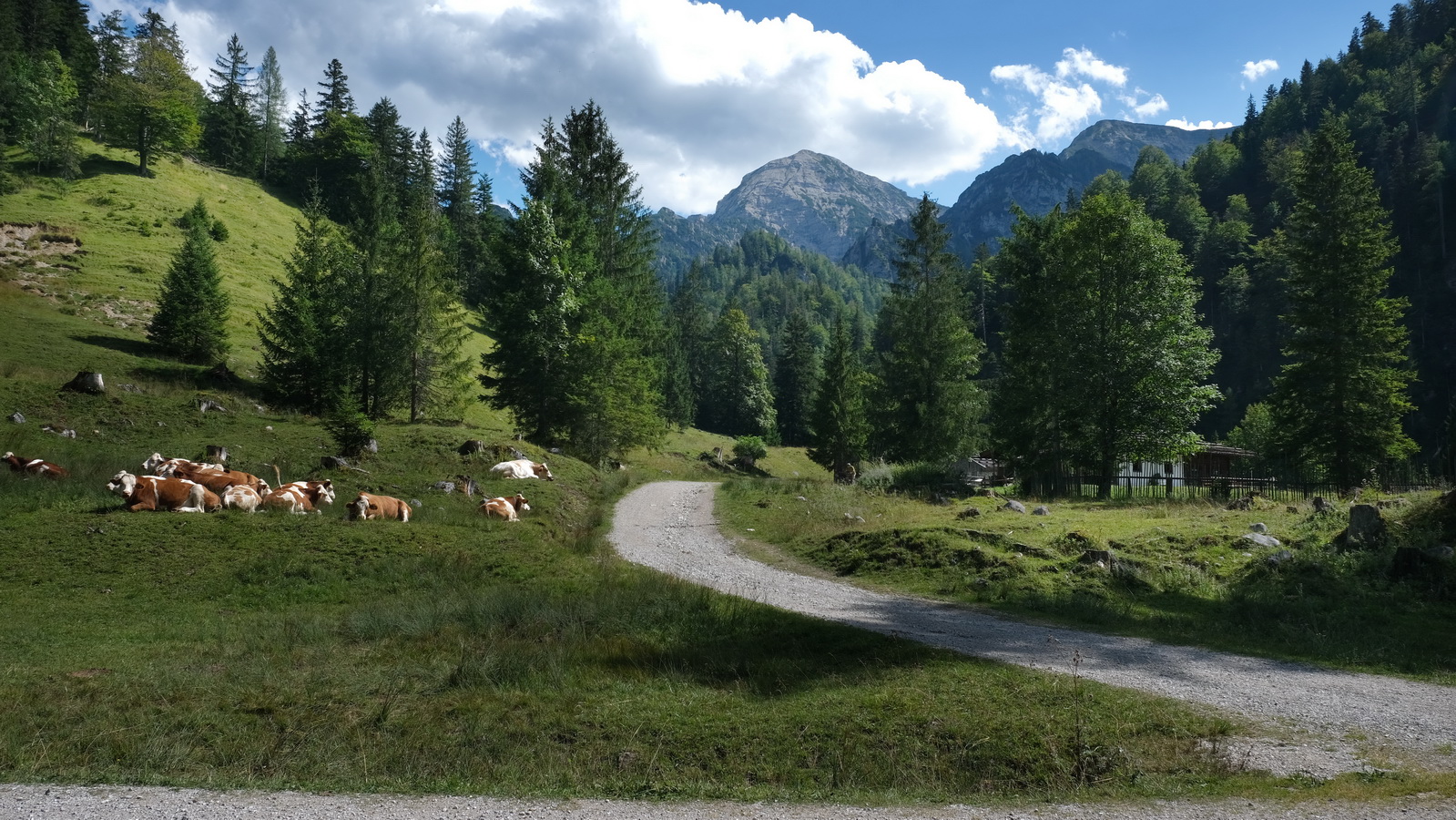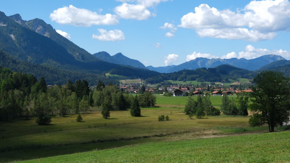 Der Sommer war trocken und ich habe für mich das Schwimmen wieder entdeckt. In unserer Nähe, zwischen Ruhpolding und Reit im Winkl, gibt es die wunderbar naturbelassenen Seen inmitten der Berge, die für Hundehalter den unschlagbaren Reiz haben, dass Vierbeiner erlaubt sind. Außerdem hatte ich in Erinnerung, die Seen selbst im Hochsommer ohne allzuviele Badegäste angetroffen zu haben. Also ideal für einen Badeausflug! Aber wie? Mit Auto kommt nicht in Frage. Mit dem Rad hin und zurück an einem Tag? Langweilig. So entstand diese Rundtour mit einer Übernachtung im Zelt auf der Wiese eines netten Ferienhauses. Doch ich greife vor.