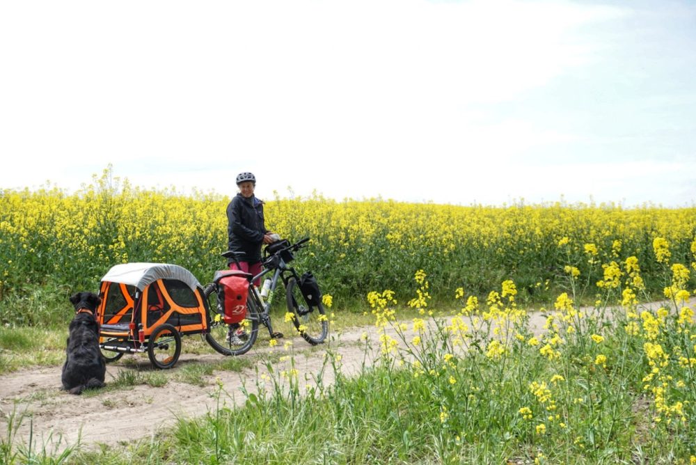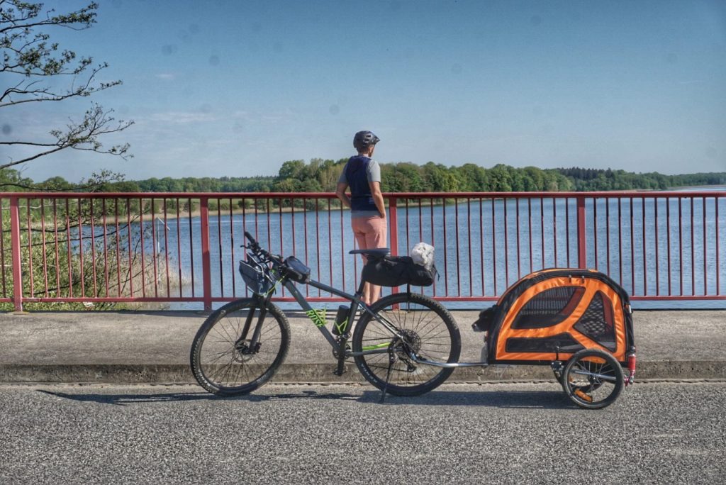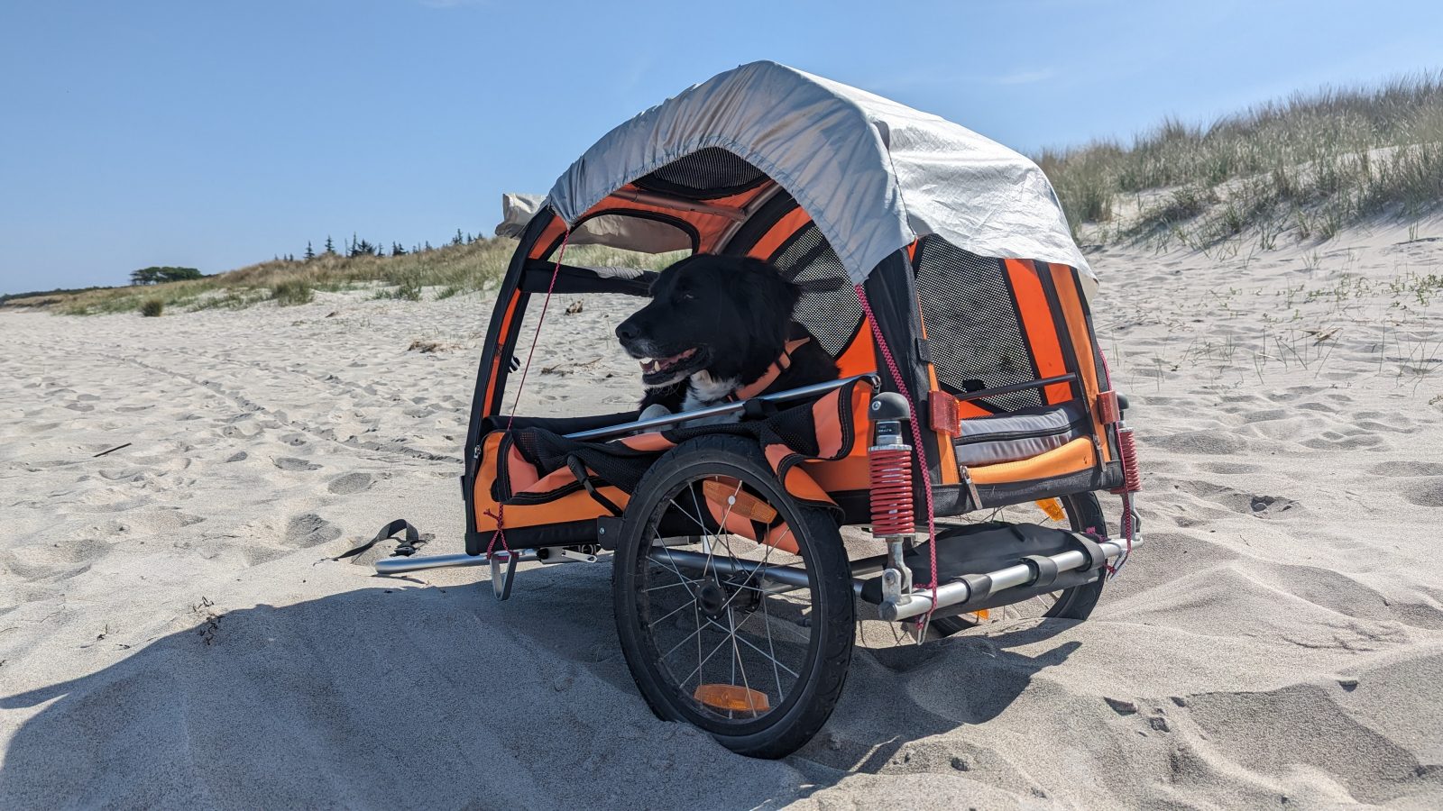Der DogBus hat sich als toller Begleiter auf jedem Terrain erwiesen. Insbesondere auf der Runde um den Plauer See war ich von seiner Kippstabilität begeistert. Das selbstgenähte Sonnen- / Regenverdeck möchte ich aber nicht missen.