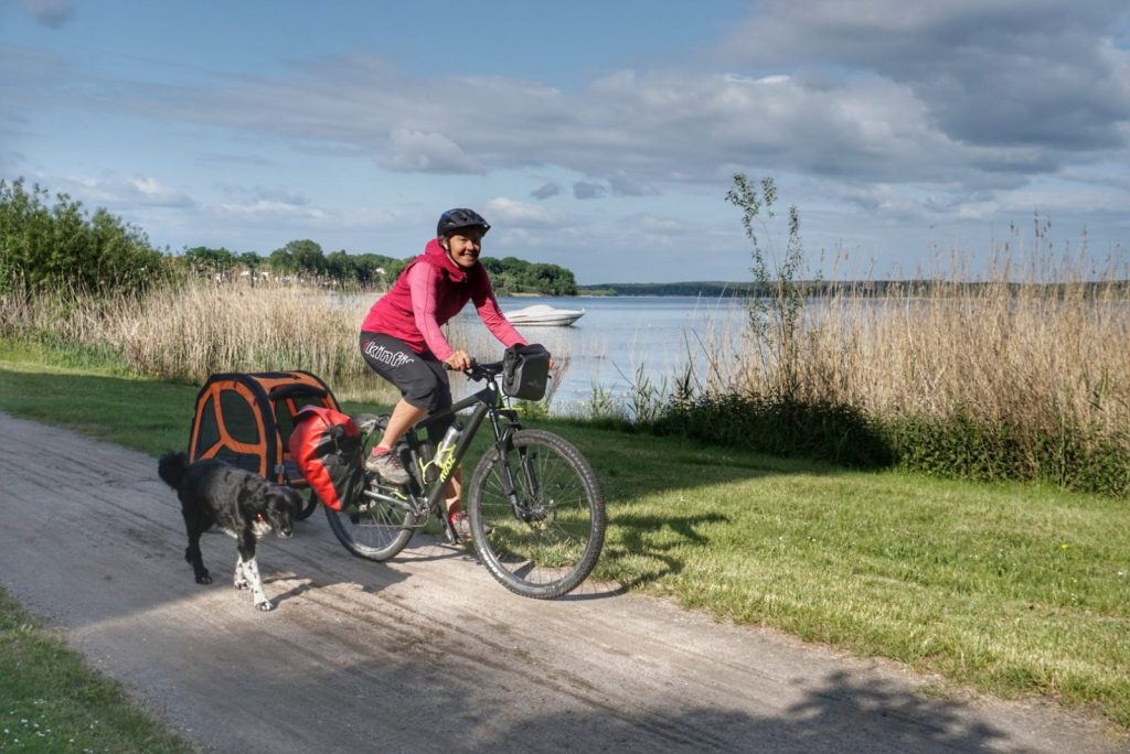 Eine weitere empfehlenswerte Seeumrundung für technisch gute Biker mit maximal mittelgroßem Hundeanhänger ist die des Plauer Sees. Auf etwas über 50 km verläuft die inoffizielle Radroute, die häufig genutzt wird, zu einem beträchtlichen Teil auf einem Wanderweg. Hunde sind hier im siebten Himmel. Nahezu der gesamte Ostuferweg verläuft auf weichem Waldboden, unter einem schattigen Blätterdach und Wasserratten können pausenlos ins erfrischende Nass springen. Hübsch ist auch der Ort Plau, der jedoch wieder viel stärker in Touristenhand ist.