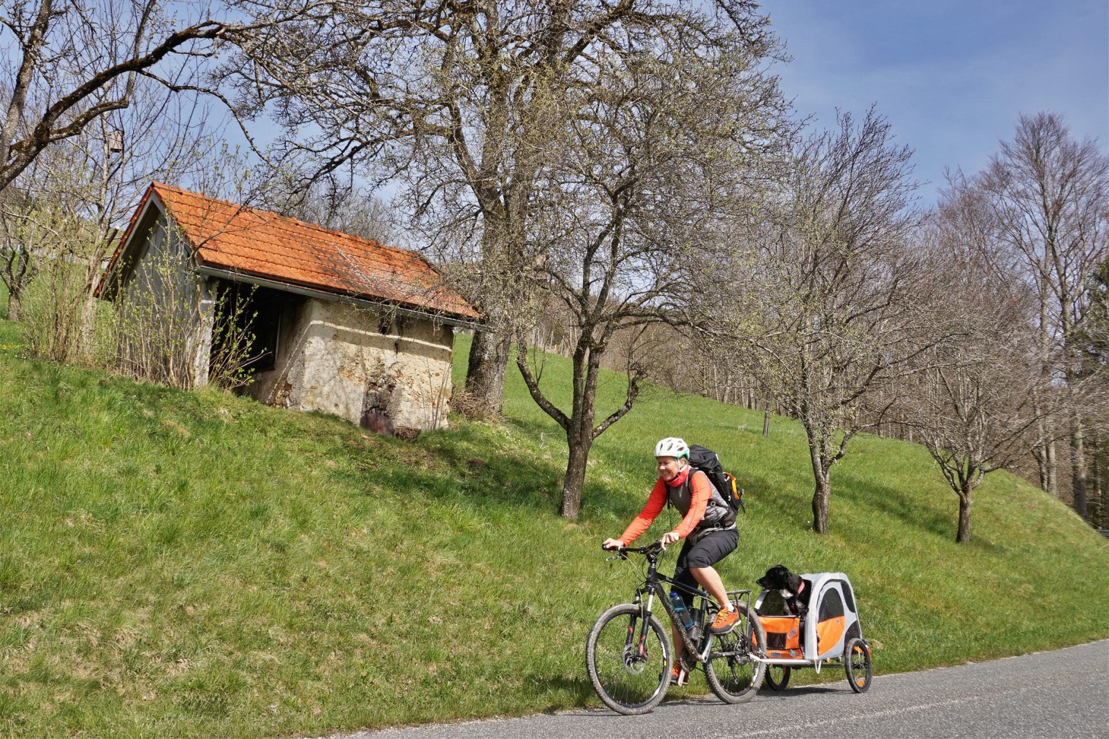 Der BergeSeen eTrail lässt sich von konditionsstarken Radfahrern auch ohne elektrische Unterstützung bewältigen, was mit Hundeanhänger allerdings eine ordentliche Leistung ist. Meist sind die Forstwege einfach zu fahren, weshalb sich der eTrail genau an diejenigen Pedalritter richtet, die Landschaft ohne radfahrerische Herausforderungen genießen möchten.