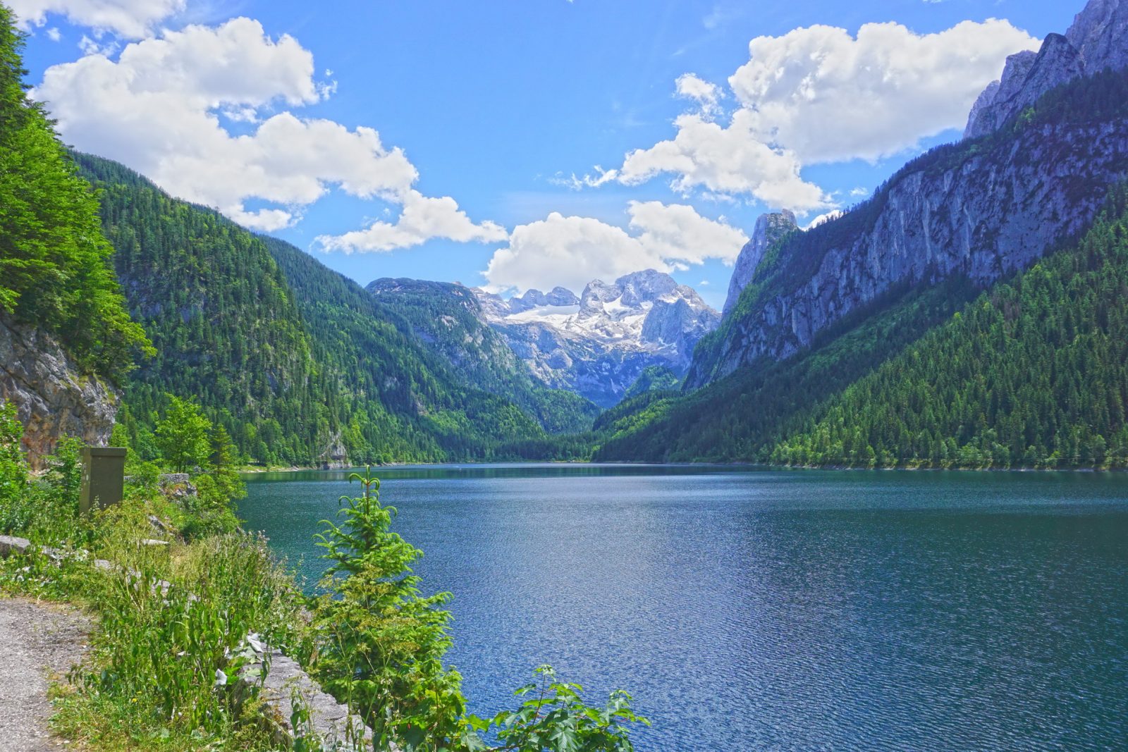 Im Auf und Ab durchzieht der BergeSeen eTrail das Alpenvorland und streift nicht weniger als 10 Seen. Im Westen noch recht flach, wird das Terrain im Osten bergiger. Steile Felsen rahmen die Seeufer, je nach Jahreszeit glitzern in der Ferne die weißen Häupter des Dachsteins und Toten Gebirges. Kirchen mit Zwiebeltürmen und prächtige, blumengeschmückte Bauernhäuser dösen in der Sonne. Saftig grüne Wiesen, tiefblaue Seen und weiße Tupferlwolken am Himmel bilden die Kulisse.