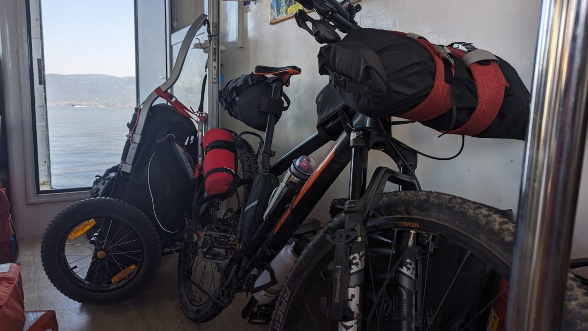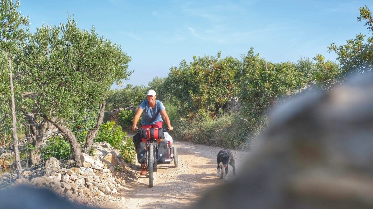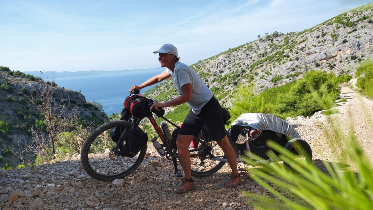 Bikepacking mit Hund und Zelt zwischen türkisblauem Meer und einsamen Hügeln