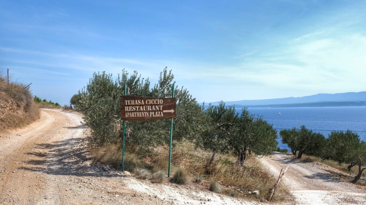 Feste Etappenpläne habe ich nie weil ich meist wild zelte. Außerdem kann ich mit Napoli schlecht planen, wie gut ich voran komme. Das ist stark vom Wetter abhängig. Brennt die Sonne vom Himmel, kann es sein, dass Laufen und auch Mitfahren eine Tortur für ihn sind und ich erst mal Siesta mache. So war es auch auf Brac. Mittags in Supetar angekommen, suchte ich uns zunächst einen schattigen Platz mit Zugang zum Meer. Nichts leichter als das, in Kroatien.