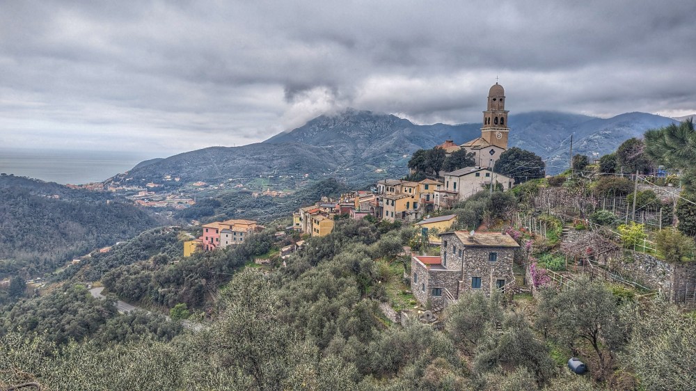 Das Hinterland ist wunderschön und gar nicht touristisch. Die Fahrten zur Küste machen einfach Spaß. Entweder finde ich Schotterstraßen, auf denen Napoli ungehemmt laufen kann oder die Sträßchen sind wenig befahren. Ich genieße herrliche Ausblicke über die bunten Häuschen am Meer von Stopps, die per Auto unmöglich wären. Während wir auf zwei Rädern ungestört bergab sausen, beobachte ich mitleidig Autofahrer, die verzweifelt nach einem der wenigen Parkplätze in der Nähe der beliebten Ortschaften Ausschau halten. Die meisten Touristen kommen schlauerweise mit der Bahn, die an winzigen Haltestellen Menschenmassen ausspuckt, bevor sie auf der Weiterfahrt im Tunnel verschwindet. Meist meide ich daher den Ortskern sondern installiere mich für eine Pause etwas oberhalb – und döse allein mit Napoli in der Frühjahrssonne.