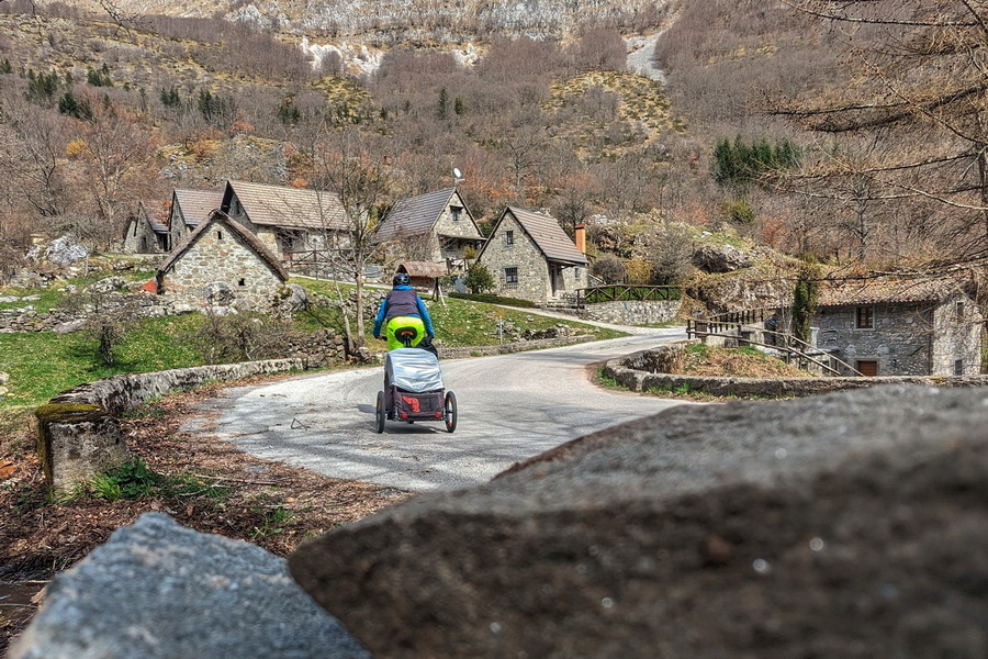 Nachts wird es noch empfindlich kalt. Einmal schmilzt das Eis auf der Windschutzscheibe erst während des Frühstückkaffees. Die Strahlen der Frühjahrssonne haben bereits Kraft und bescheren uns perfekte Bedingungen zum Radfahren: nicht zu warm für Napoli, angenehm für mich. Es fällt mir nicht schwer, Touren zusammen zu stellen, die uns beiden gerecht werden. Verkehrsfreie Laufstrecken für Napoli während ich mich bergauf schnaufend und manchmal schiebend seinem Trödeltempo problemlos anpasse. Bergab auf Asphalt mit fliegenden Ohren und kühlem Kopf. Ausgedehnte, noch winternackte Wälder bedecken die sanften Hügel der Garfagnana, auf höheren Bergkuppen glänzt letzter Schnee.