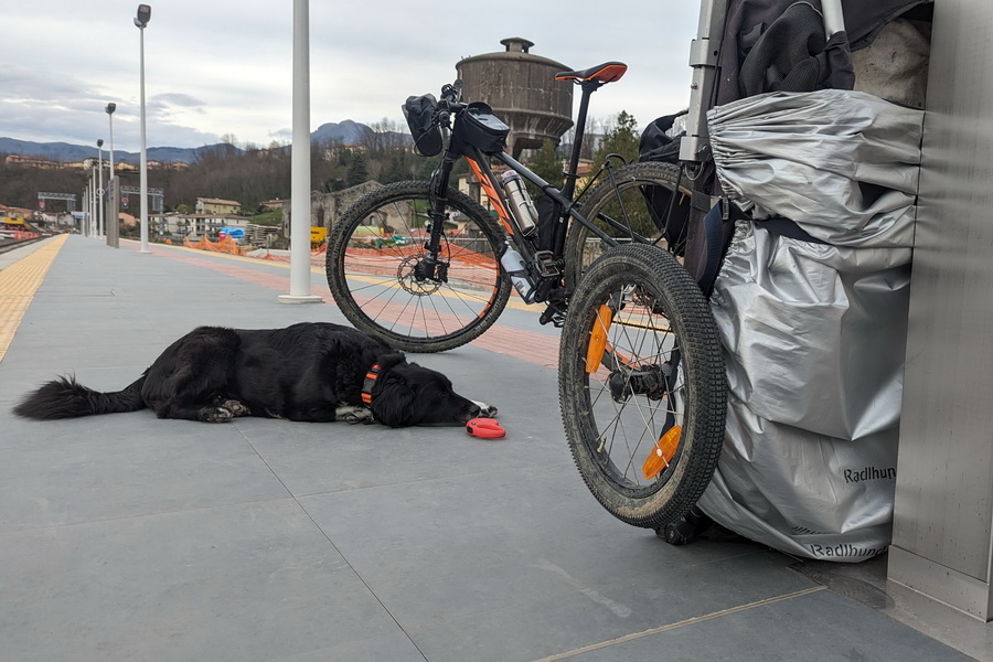 Immer wieder unternehme ich Abstecher in winzige Orte, die meist auf Anhöhen erbaut sind und fantastische Panoramen bereit halten. Eine Bar oder gar einen Alimentari sucht man meist vergebens. Einkaufen geht nur im Tal. Dort verläuft auch die Bahnstrecke, mit deren Hilfe sich grandiose Radtouren zusammen stellen lassen. Wer sich mit Rad und Hund und Glump schon immer mal an eine Bahnfahrt heranwagen wollte, hat hier ideale Bedingungen.