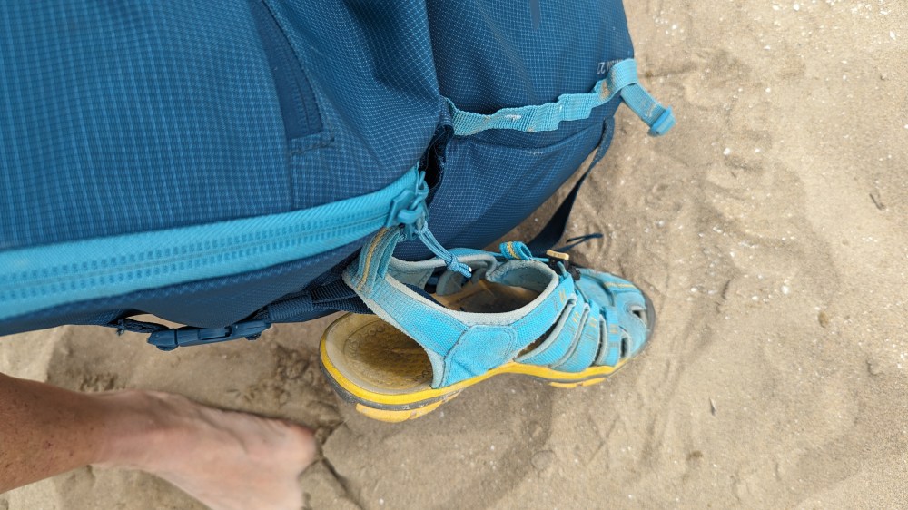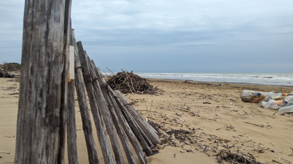 Zieht im Hinterland schlechtes Wetter auf, kann man mit etwas Glück trockene Strandspaziergänge unternehmen. Die Apuanische Küste ist von Ende September bis mindestens Ende März verlassen-schön. Die Bäder sind sturmsicher eingepackt, Strandgut lädt zum Schnüffeln ein und an frei laufenden Hunden stört sich niemand. Für mich war der Strand von Torre del Lago Puccini eine ungeplante Entdeckung. Der Ort ist einfach nur scheußlich, doch liegt er wenige Kilometer vom Meer entfernt. An der Wasserfront sind lediglich die obligatorischen Strandbäder zu finden. Abgedeckte Parkautomaten und ein paar Wohnmobile ermutigten mich, dort Ende März auch zwei Nächte zu verbringen, was anstandslos geduldet wurde. In südlicher Richtung säumen den Strand einige Naturschutzgebiete und es machte uns beiden viel Spaß, auf langen Spaziergängen die angeschwemmten Schätze im Sand zu erkunden.