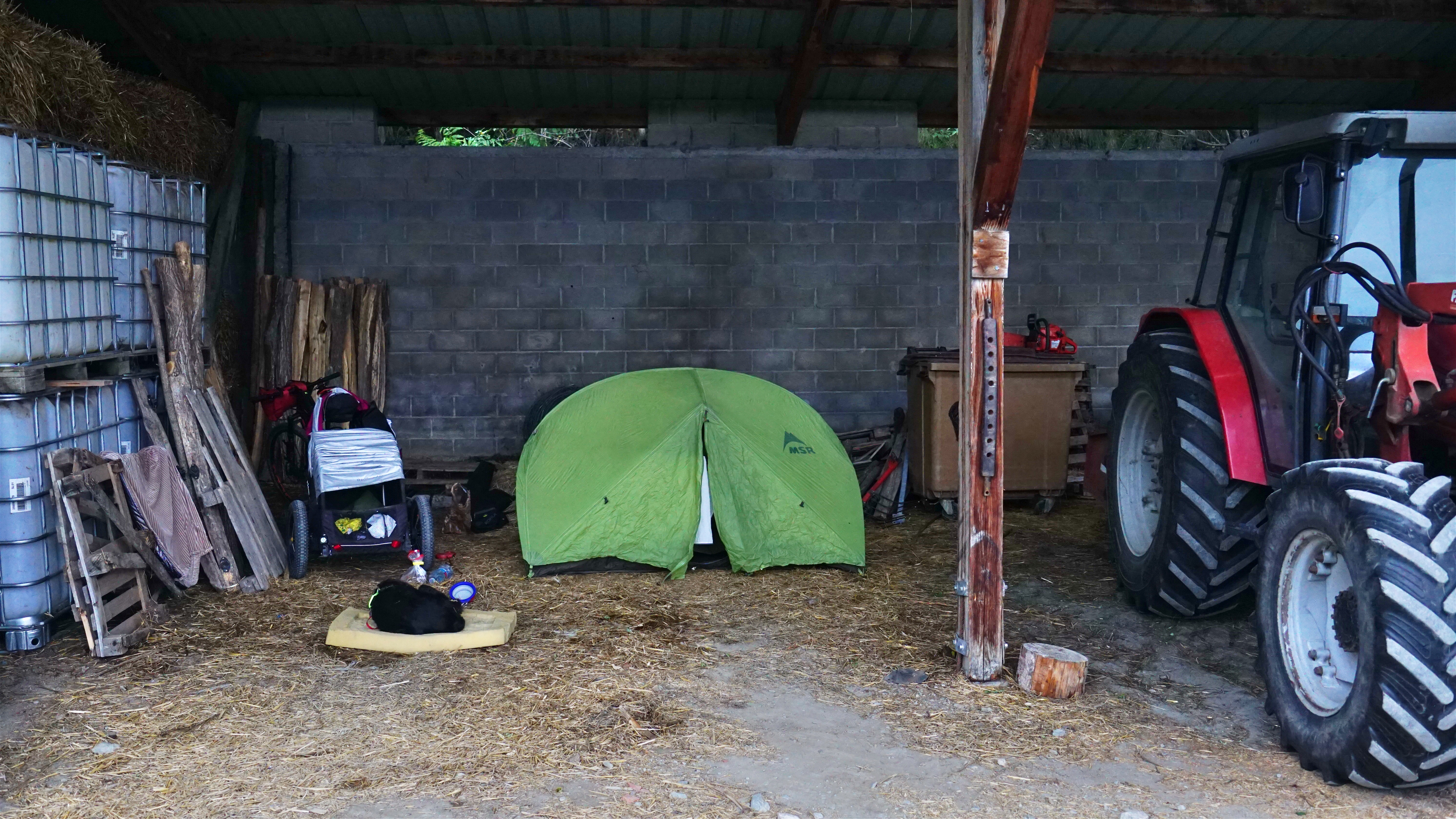 Es ist kalt. Napoli läuft brav neben dem Rad während ich diesen einsamen Pyrenäenpass hinauf trete. Um uns nichts als bewaldete Hügel, hier und da eine leere Weide. Manchmal in der Ferne ein Haus vor einer untergehenden Sonne. Mit diesen Temperaturen hatte ich nicht gerechnet, Anfang Oktober, in den Pyrenäen, gegen Abend. Ich halte schon seit längerem Ausschau nach einem Platz für das Zelt. Da sehe ich in der Ferne ein Haus und eine Tafel neben der Straße verspricht eine „Gîte“, also eine Zimmervermietung. Spontan beschließe ich, anzufragen. Ein Zimmer bekommen wir nicht, doch dürfen wir im offenen Heulager das Zelt aufschlagen.