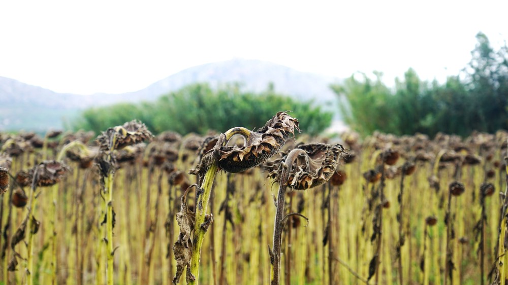 Die Landschaft hat sich kontinuierlich gewandelt. So grün, üppig und wasserreich es noch in den Pyrenäen war umso trockener und staubiger ist es jetzt. Trotzdem gefallen mir diese Pisten, die uns von einem hübschen Dorf zum nächsten führen. Vorüber an Feldern mit verblühten Sonnenblumen und endlosen Apfelplantagen.